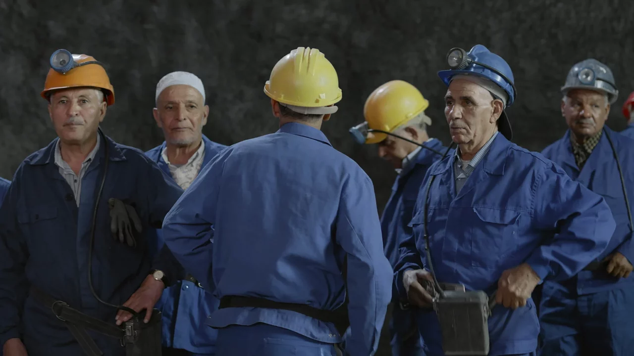 Jerada, Maroc. L’exploitation d’une mine de charbon s’est officiellement arrêtée en 2001, mais elle se poursuit en cachette. Le film reconstitue le travail des mineur·es et met en scène les habitant·es de la ville dans leur propre rôle.