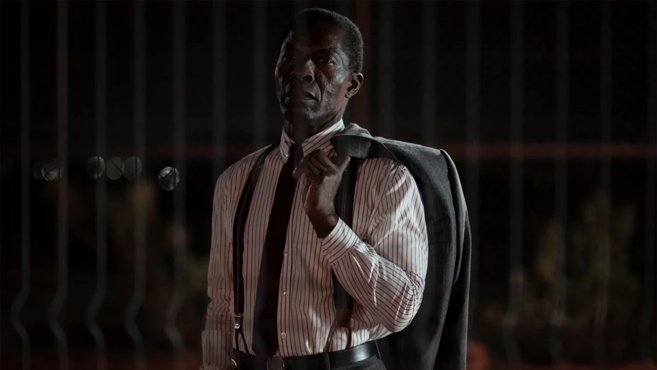 Quelque part en Afrique de l’Ouest, le chantier d’une grosse entreprise est supervisé par deux hommes : Horn (Matt Dillon) et Cal (Tom Blyth). Tous deux vivent ensemble, retranchés derrière les doubles grilles du site, réservé aux Blanc·hes. Le soir de l’arrivée de la femme de Horn, Leonie (Mia McKenna-Bruce), un dénommé Alboury (Isaach de Bankolé) se plante devant les barrières pour réclamer le corps de son frère, ouvrier mort sur le chantier le jour même. Le film est adapté de la pièce de Koltès, Combat de nègre et de chiens, écrite en 1979.